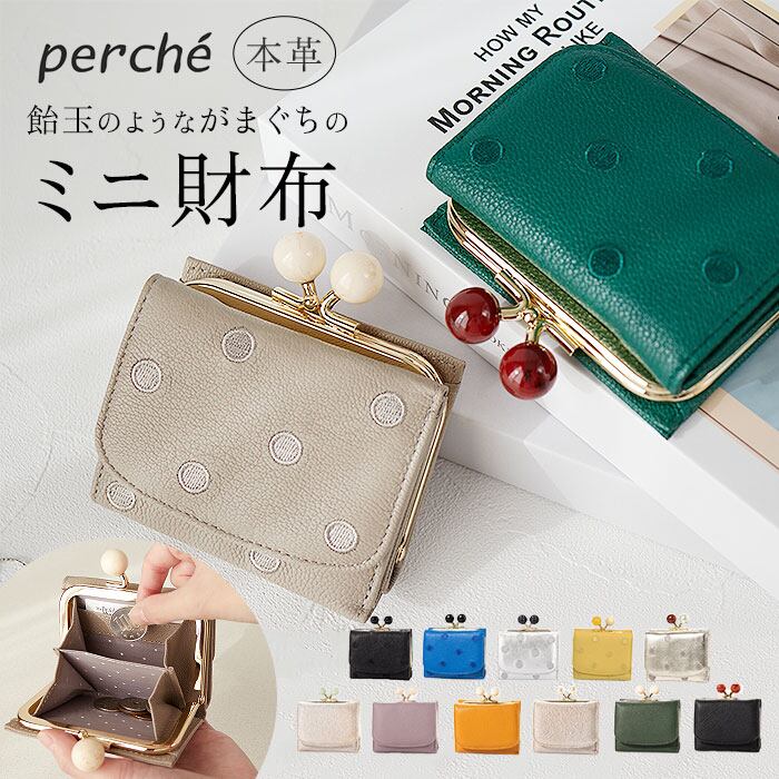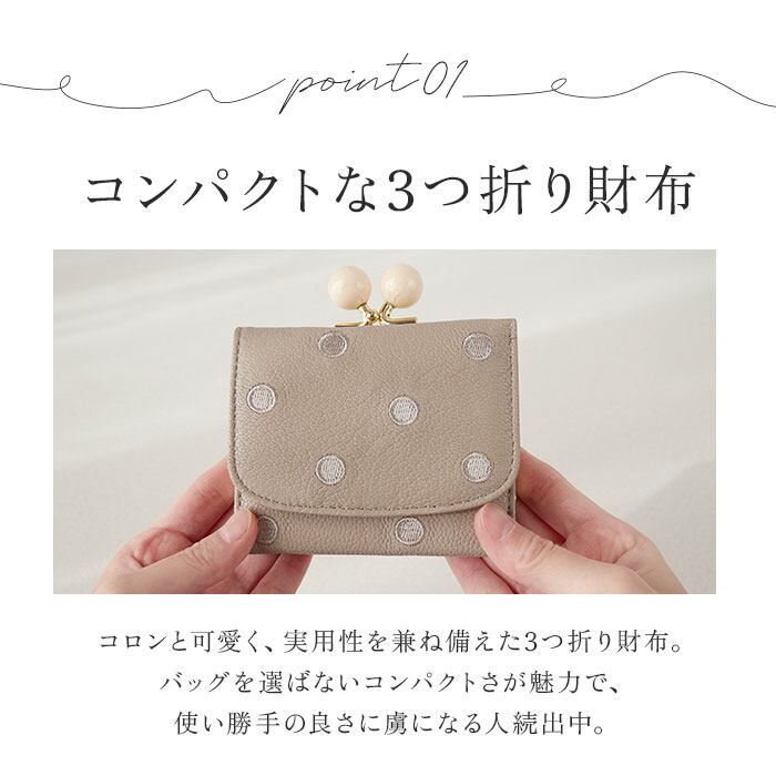 ・がま口部分の2個のアクリル玉が可愛いアイテム♪デザイン性だけでなくつまみが大きいことによって開け閉めしやすいのもポイント!