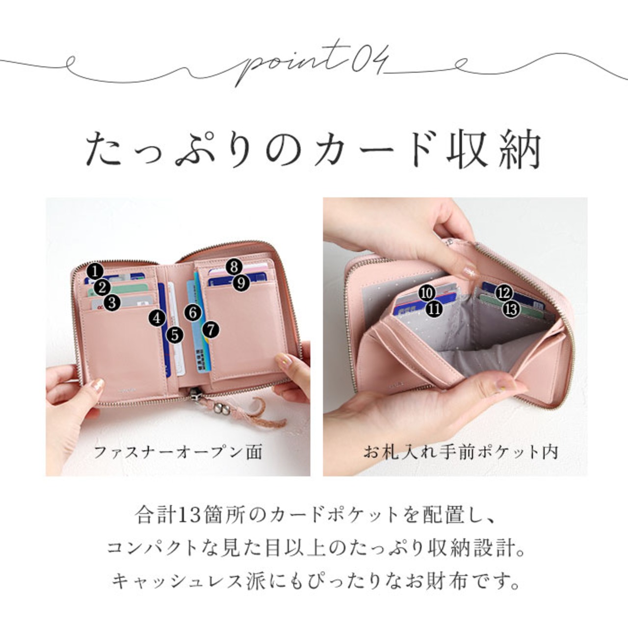 ・カードポケット×13、お札入れ×2、小銭入れ×1