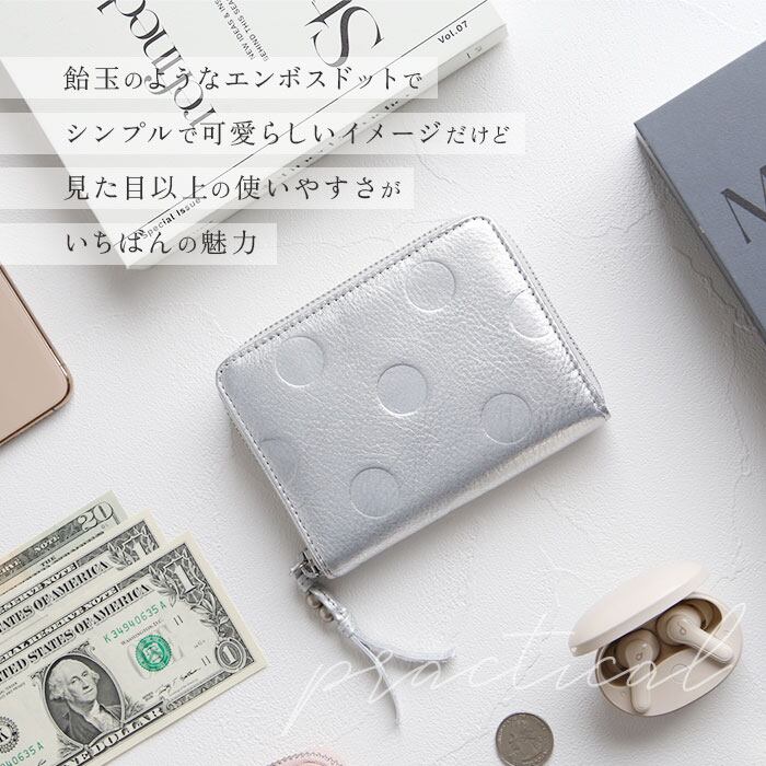percheペルケ ドット型押しラウンドパームフィット財布