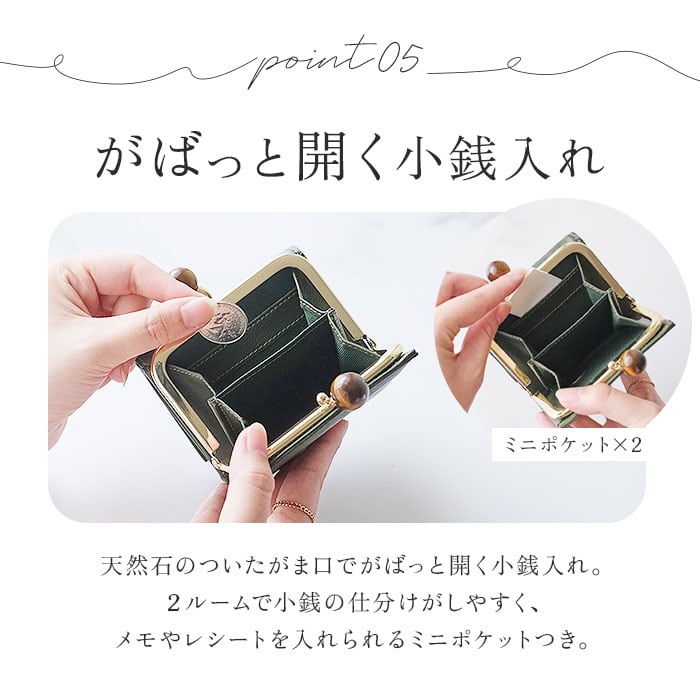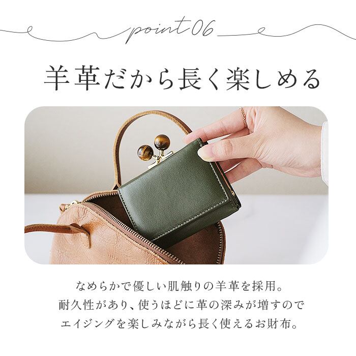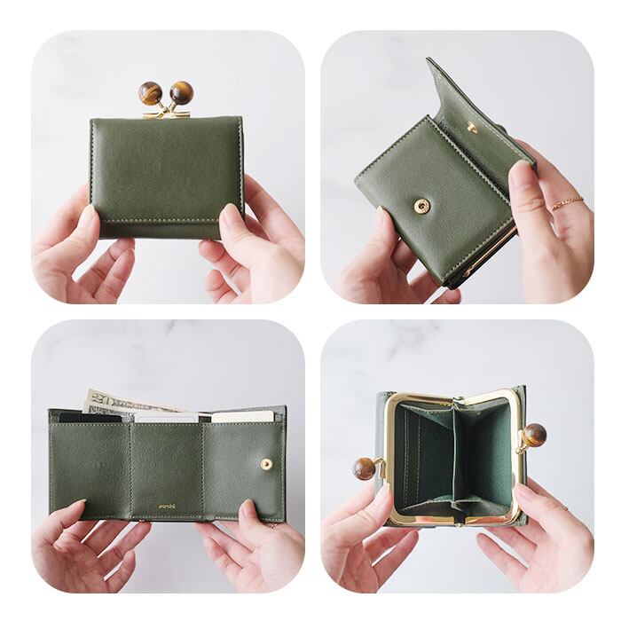 ・ガバッと大きく開き、小銭が取り出しやすい作りが特徴的ながま口仕様。
