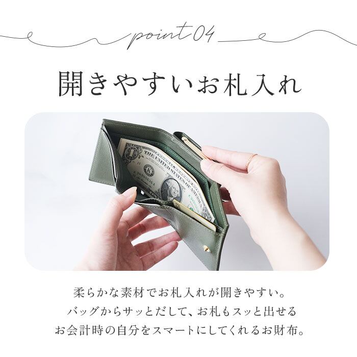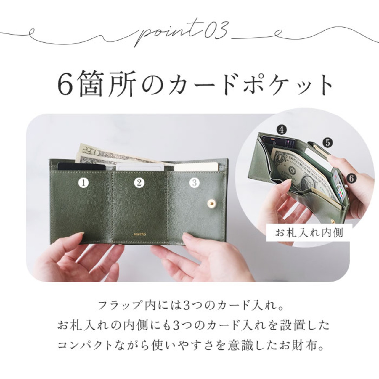 ・3つ折りでミニショルダーやアウターのポケットにも入るサイズ感なのも嬉しいポイント。