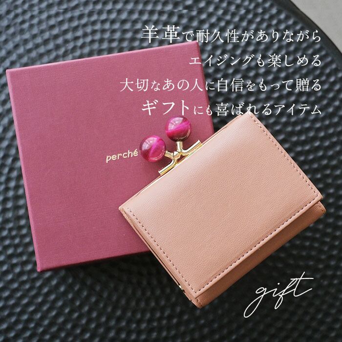 ペルケ 財布 perche 08-06-03272 通販 三つ折り財布 ブランド がまぐちサイフ 三つ折り ジェムストーンがま口 がま口財布 レディース おしゃれ シンプル がま口 天然石 きれいめ ジェムストーンがま口3つ折り財布 小銭入れあり レディース財布