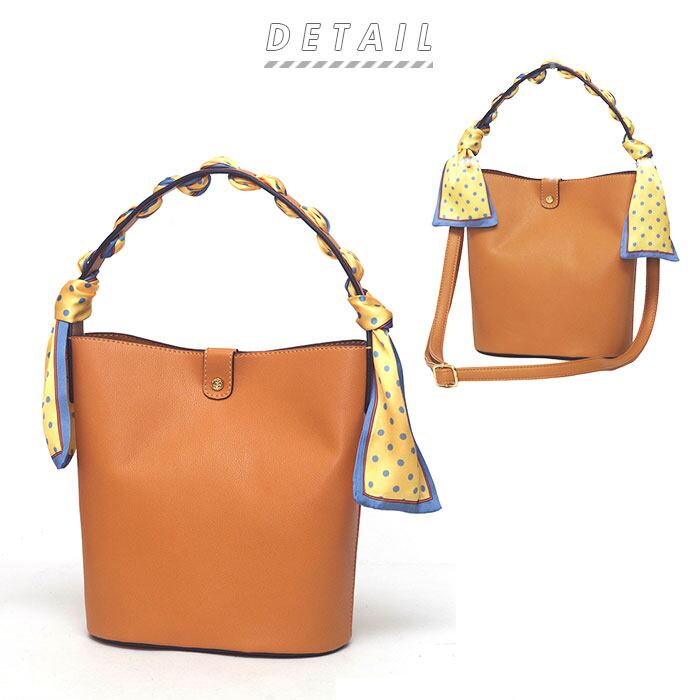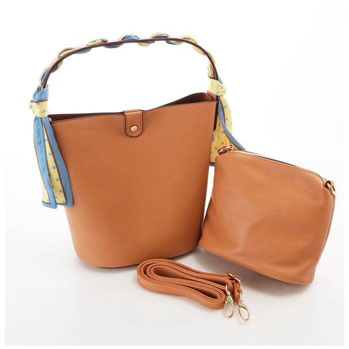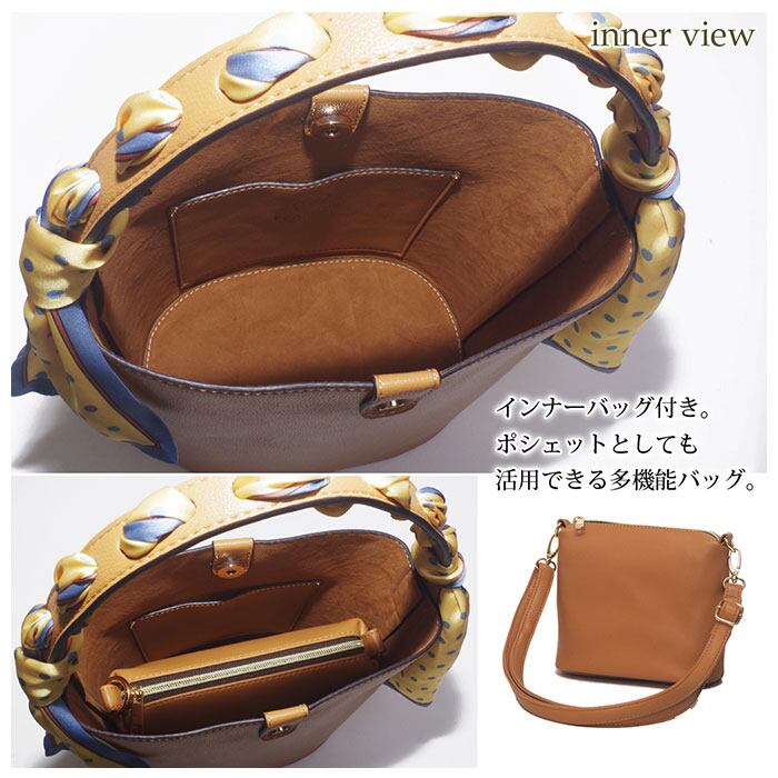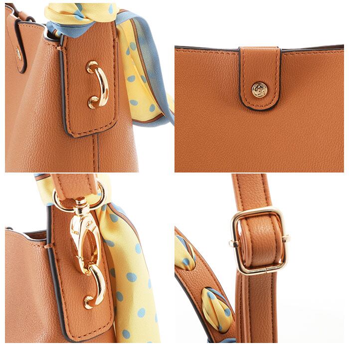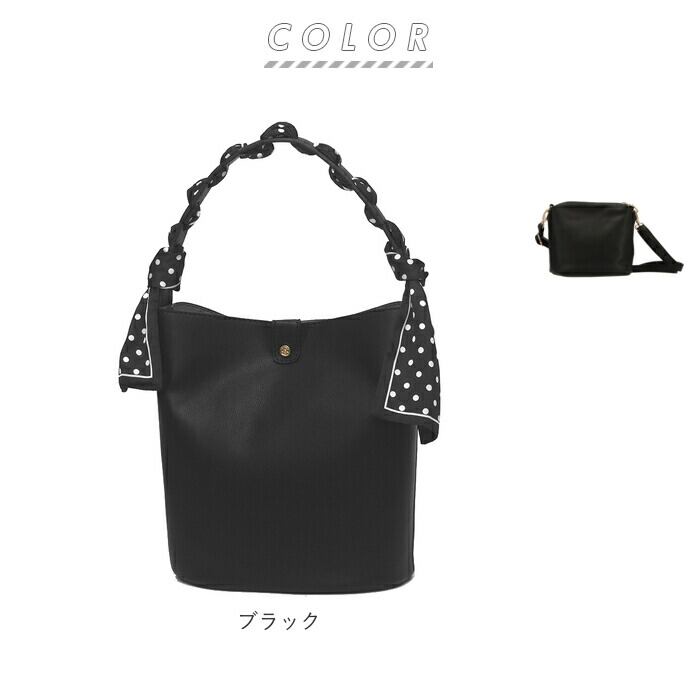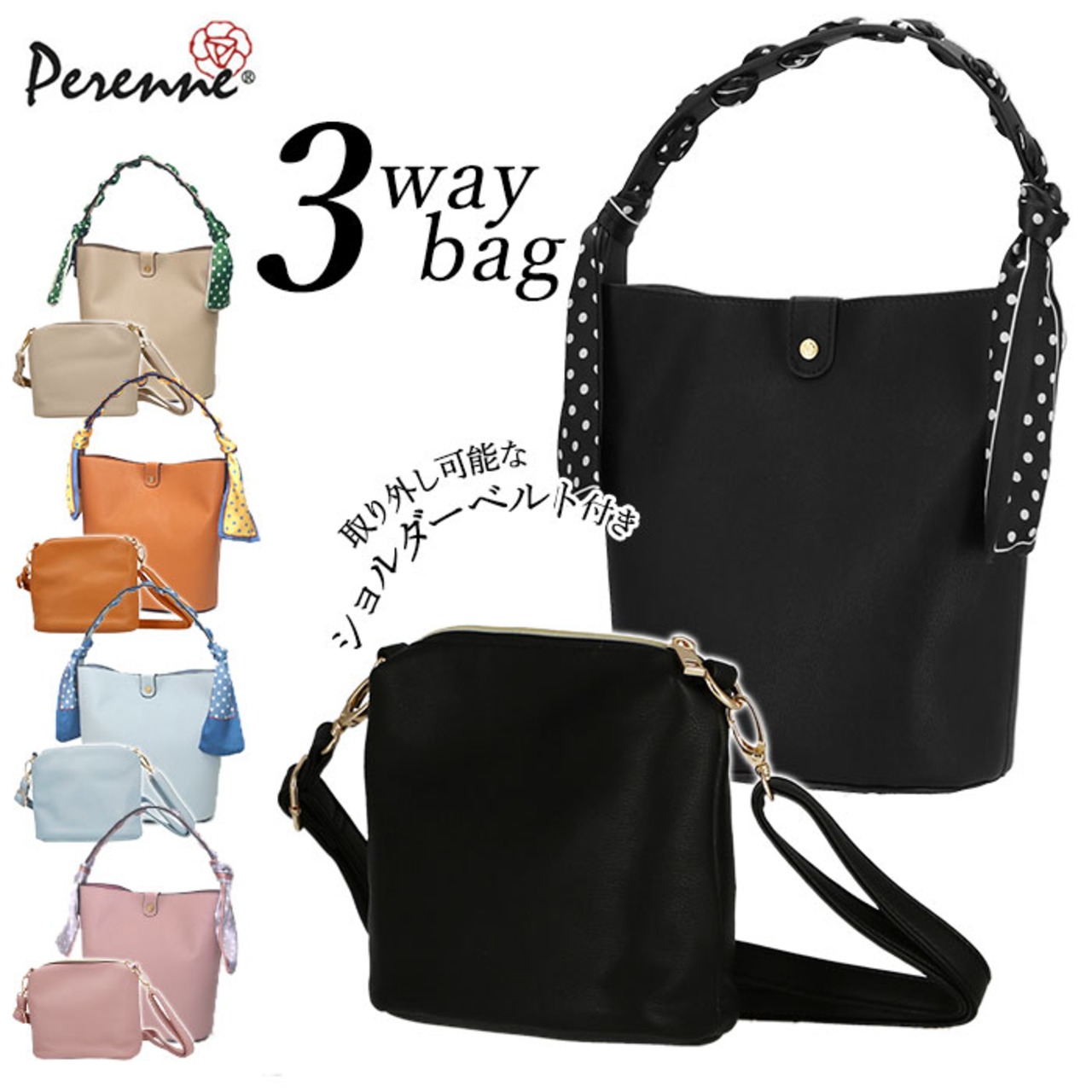 ・シンプルで素材感のあるフェイクレザーに水玉模様のスカーフを絡ませた遊び心あるデザイン。エレガント&ポップなPERENNE(ペレンネ)の3WAYレディースバッグ。