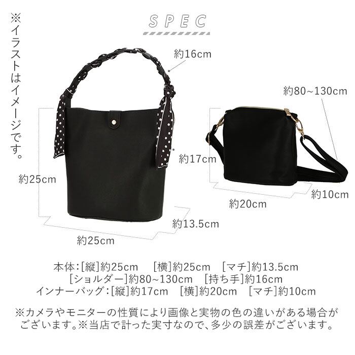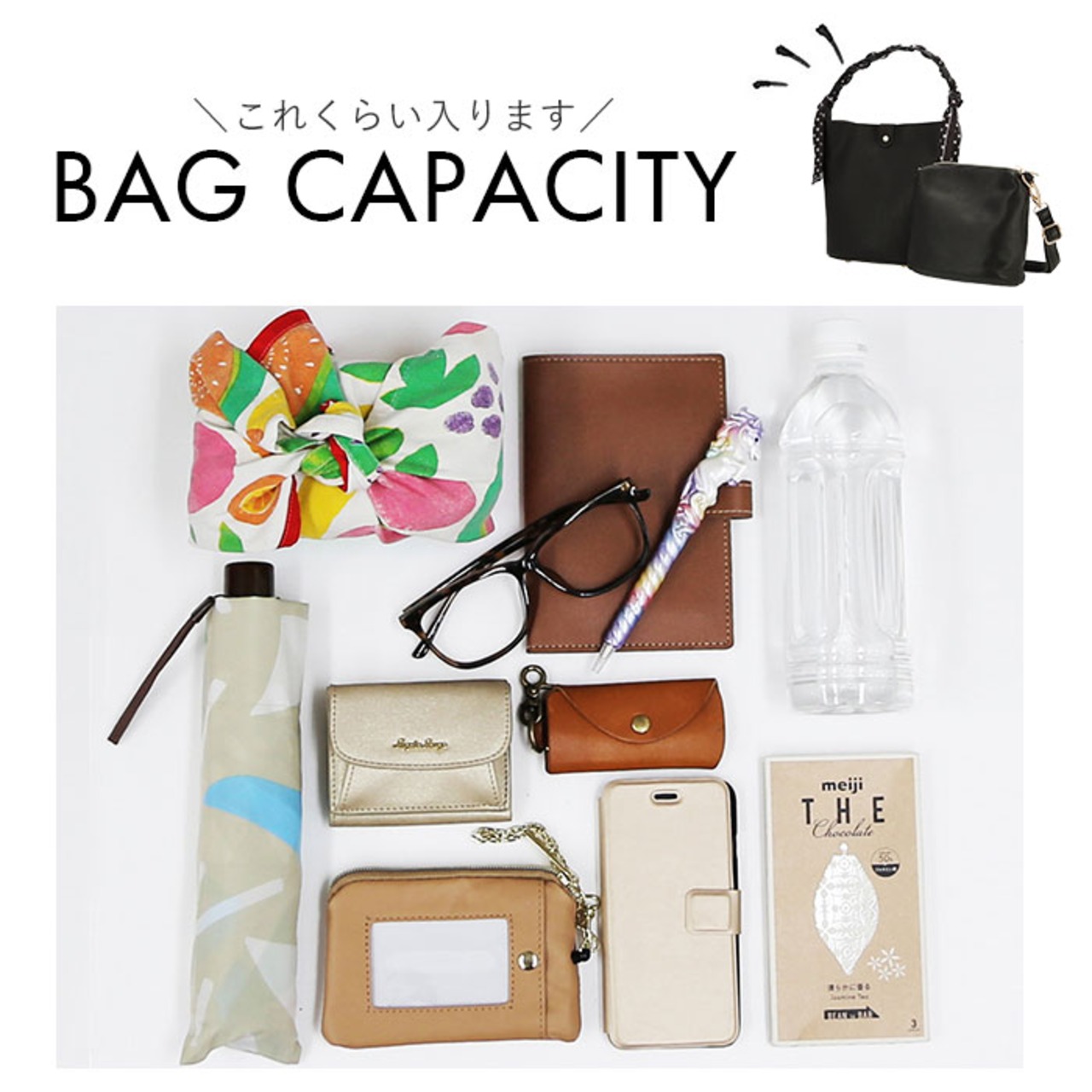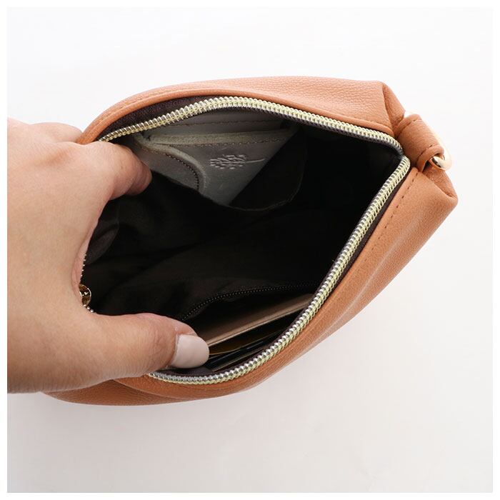 ・バッグ本体と同じフェイクレザー生地を使用したインナーバッグが付属。化粧小物をまとめてバッグインバッグとしてはもちろん、ショルダーベルトを取り付けてポシェットのように単体使用もOK!