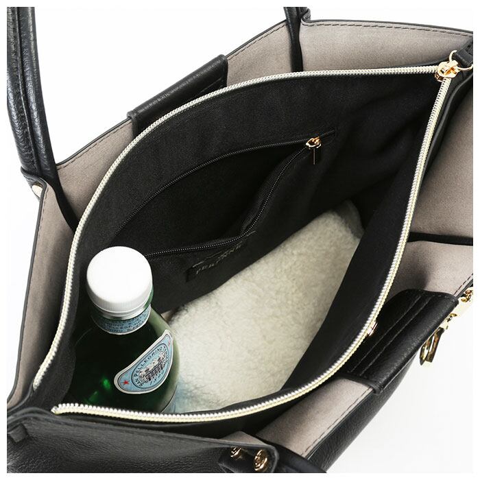 ・さらにメイン収納内にはファスナー付きポケットがあるので、スマートフォンやカードケース等、大切な小物の収納に便利。