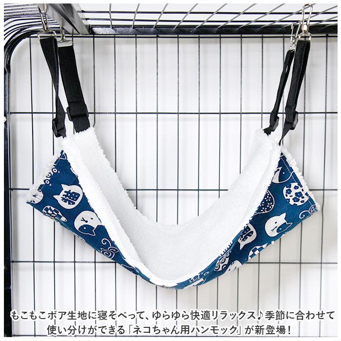 ・もこもこボア生地に寝そべって、ゆらゆら快適リラックス♪季節に合わせて使い分けができる「ネコちゃん用ハンモック」が新登場!