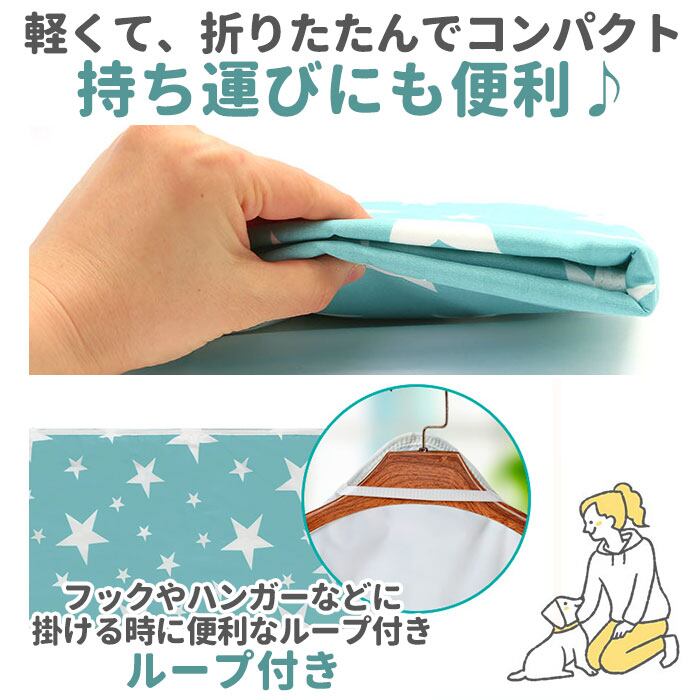・シートの裏側には、お洗濯後にフックやハンガーなどに掛けて便利に使えるループ付き。
