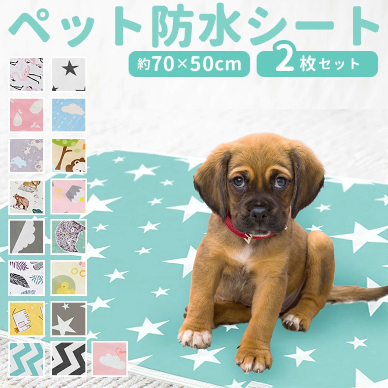 ・ワンちゃんのお漏らしも、サッとひと拭きで安心!ポップな絵柄が可愛い「ペット用はっ水シート(50cm×70cmタイプ)」が新登場。