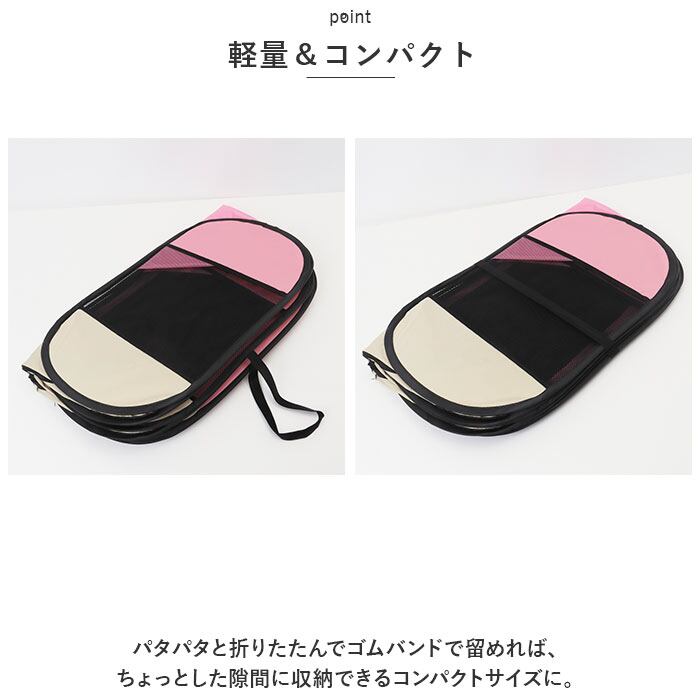 ・柔らかいポリエステル素材とメッシュ生地、弾力性のあるワイヤーフレームを使っているから元気なペットがぶつかっても安心。