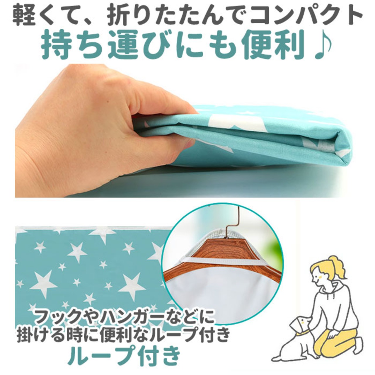 ・シートの裏側には、お洗濯後にフックやハンガーなどに掛けて便利に使えるループ付き。