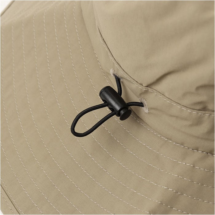 ・取り外しできるあご紐付き。キュッと絞って調節でき、吹き飛ばされることなく迷子知らず。