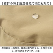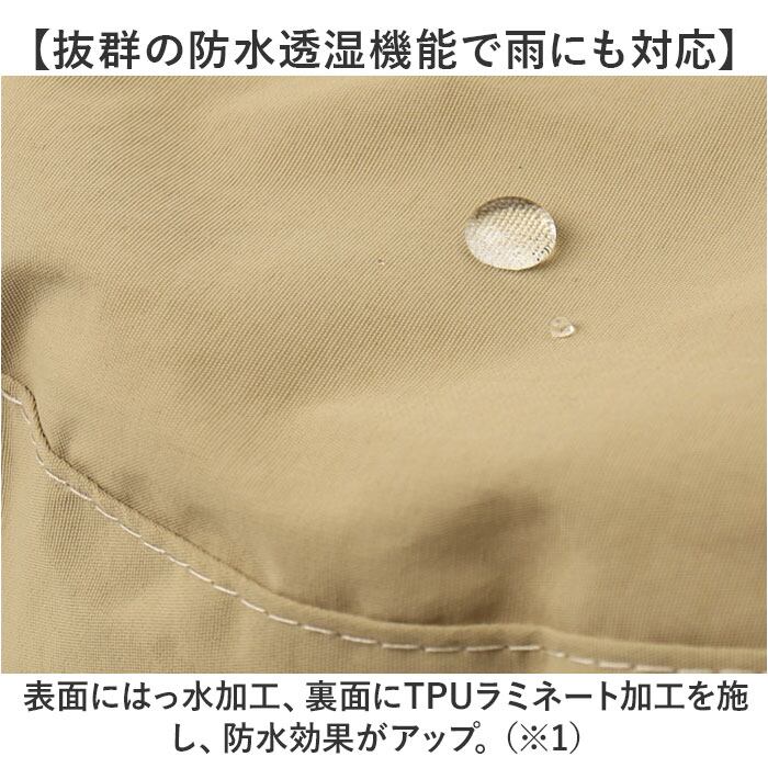 ・表面にはっ水加工、裏面にTPUラミネート加工を施し、防水効果がアップ。