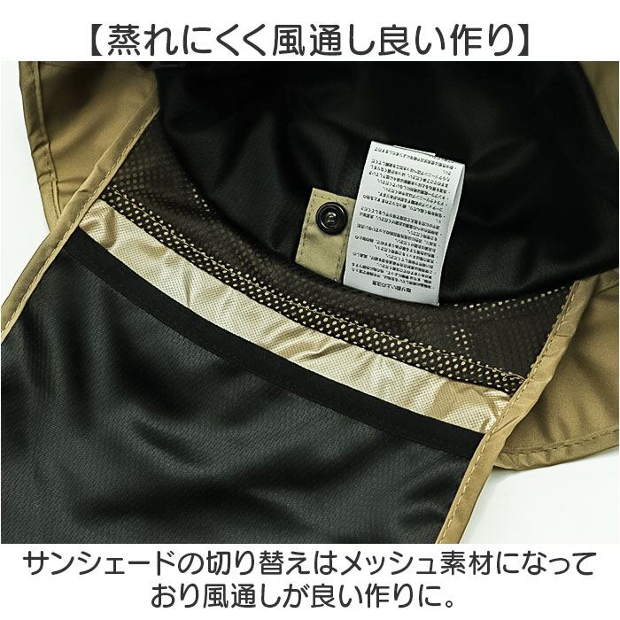 ・首元までしっかりとカバーしてくれるサンシェードつき。首の後まで日よけ効果あり◎