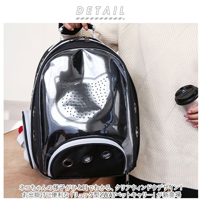 ・ネコちゃんの様子がひと目でわかる、クリアウィンドウデザイン!お出掛けに便利な「リュック型2WAYペットキャリー」が新登場。