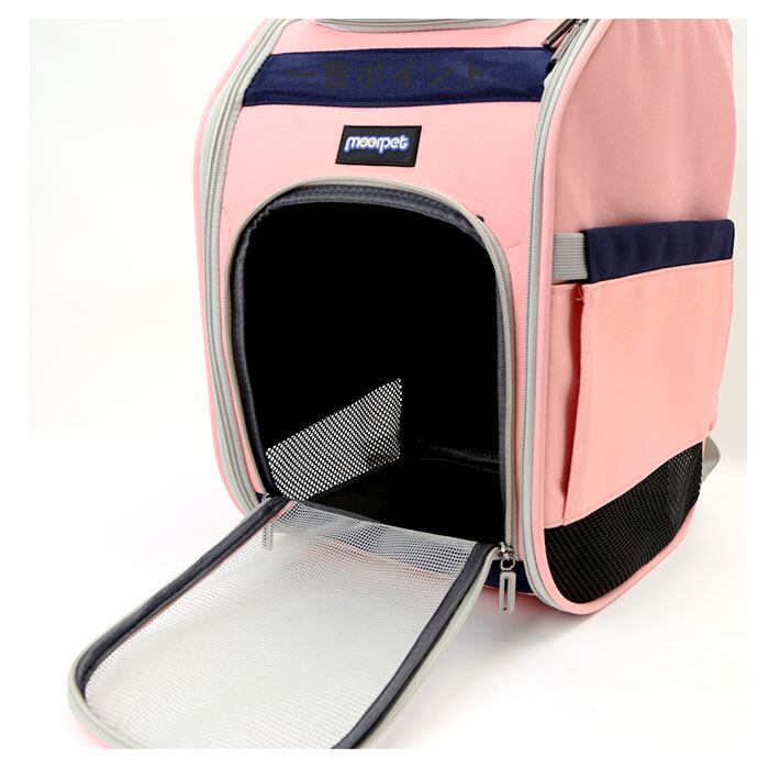 ・フロントと天面のメッシュ小窓は、大きく開くダブルファスナー仕様。ペットが嫌がらずに出入りでき、お出掛け前の準備もスムーズ。