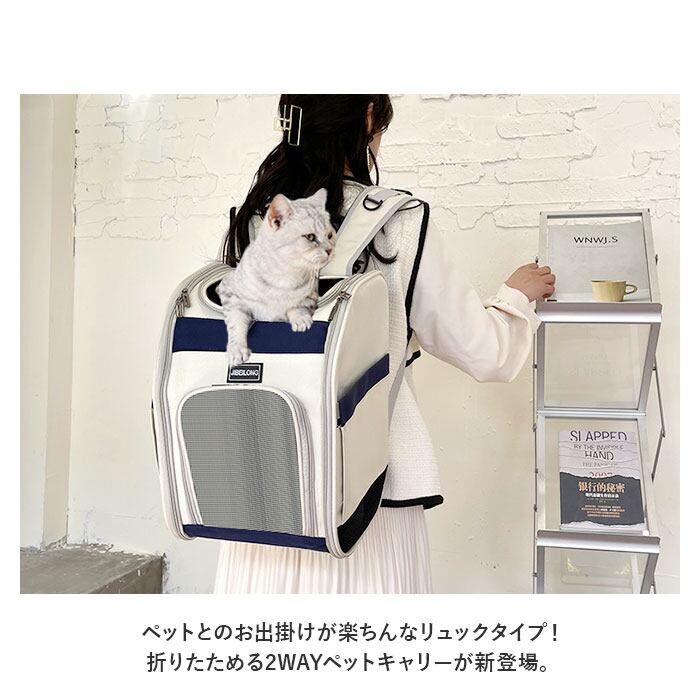 ・ペットとのお出掛けが楽ちんなリュックタイプ!折りたためる2WAYペットキャリーが新登場。