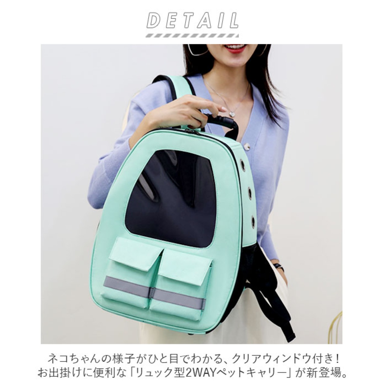 ・ネコちゃんの様子がひと目でわかる、クリアウィンドウ付き!お出掛けに便利な「リュック型2WAYペットキャリー」が新登場。