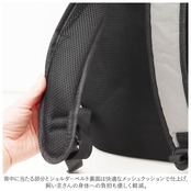 ・背中に当たる部分とショルダーベルト裏面は快適なメッシュクッションで仕上げ、飼い主さんの身体への負担も優しく軽減。