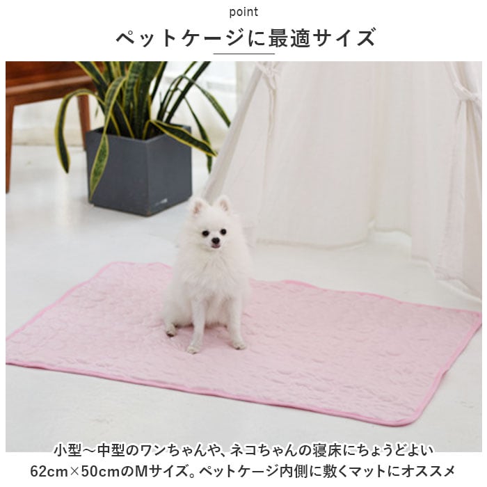 ・小型~中型のワンちゃんや、ネコちゃんの寝床にちょうどよい62cm×50cmのMサイズ。ペットケージ内側に敷くマットにオススメ。
