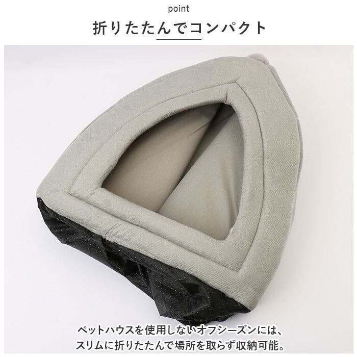 ・ペットハウスを使用しないオフシーズンには、スリムに折りたたんで場所を取らず収納可能。