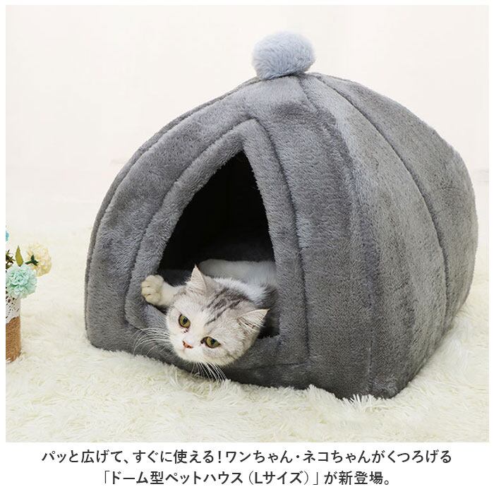 ・パッと広げて、すぐに使える!ワンちゃん・ネコちゃんがくつろげる「ドーム型ペットハウス(Lサイズ)」が新登場。