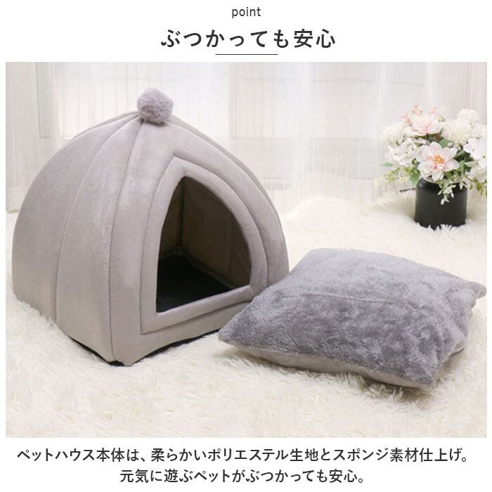 ・ペットハウス本体は、柔らかいポリエステル生地とスポンジ素材仕上げ。元気に遊ぶペットがぶつかっても安心。