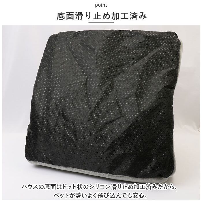 ・ハウスの底面はドット状のシリコン滑り止め加工済みだから、ペットが勢いよく飛び込んでも安心。
