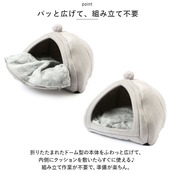 ・折りたたまれたドーム型の本体をふわっと広げて、内側にクッションを敷いたらすぐに使える♪組み立て作業が不要で、準備が楽ちん。