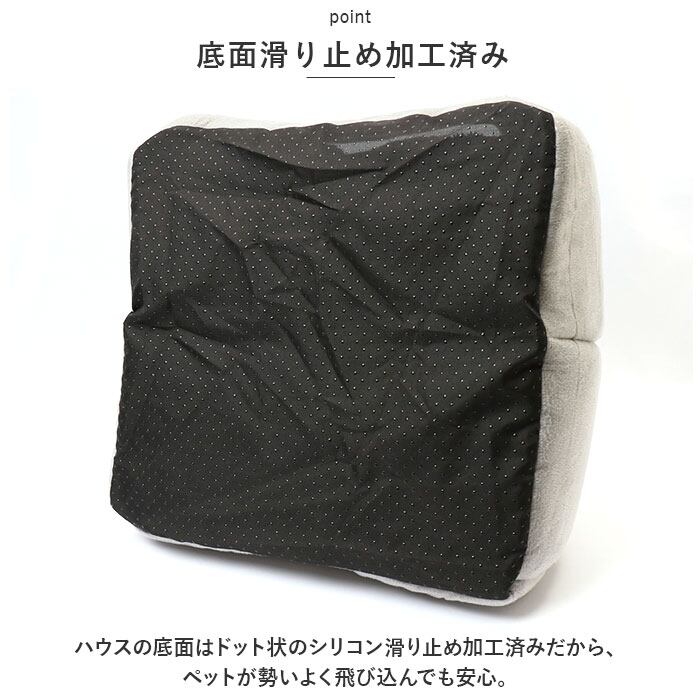 ・ハウスの底面はドット状のシリコン滑り止め加工済みだから、ペットが勢いよく飛び込んでも安心。