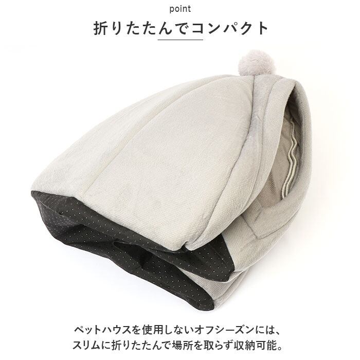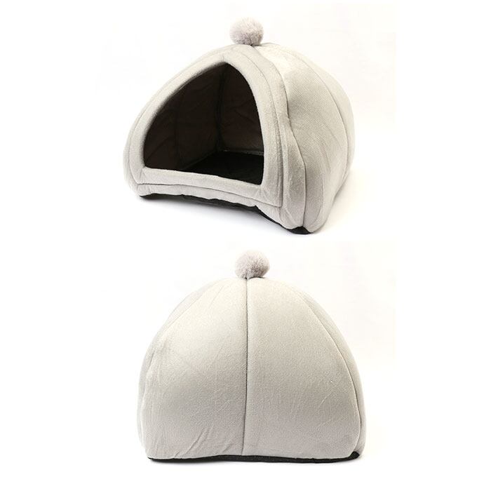 ・伝統的な猫ちゃんの寝床「猫ちぐら」をモチーフに造られた、可愛らしいペットベッド。ニット帽のような、屋根の上のポンポンチャームがアクセント。