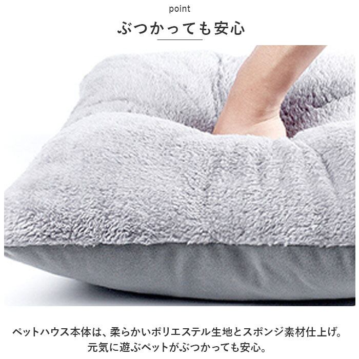 ・ペットハウス本体は、柔らかいポリエステル生地とスポンジ素材仕上げ。元気に遊ぶペットがぶつかっても安心。