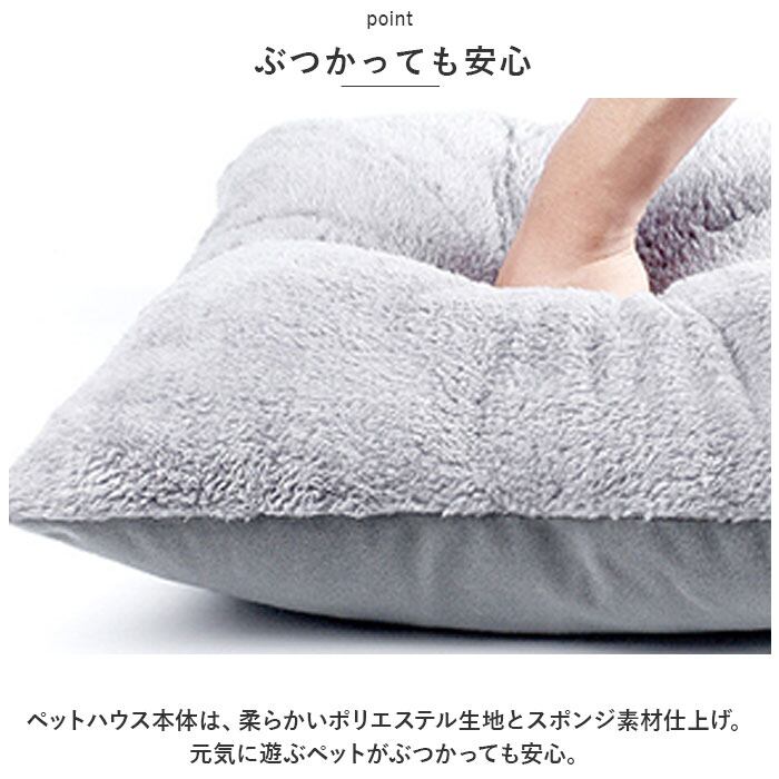 ・ペットハウス本体は、柔らかいポリエステル生地とスポンジ素材仕上げ。元気に遊ぶペットがぶつかっても安心。