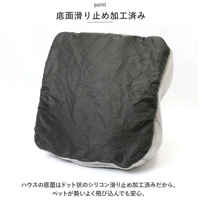 ・ハウスの底面はドット状のシリコン滑り止め加工済みだから、ペットが勢いよく飛び込んでも安心。