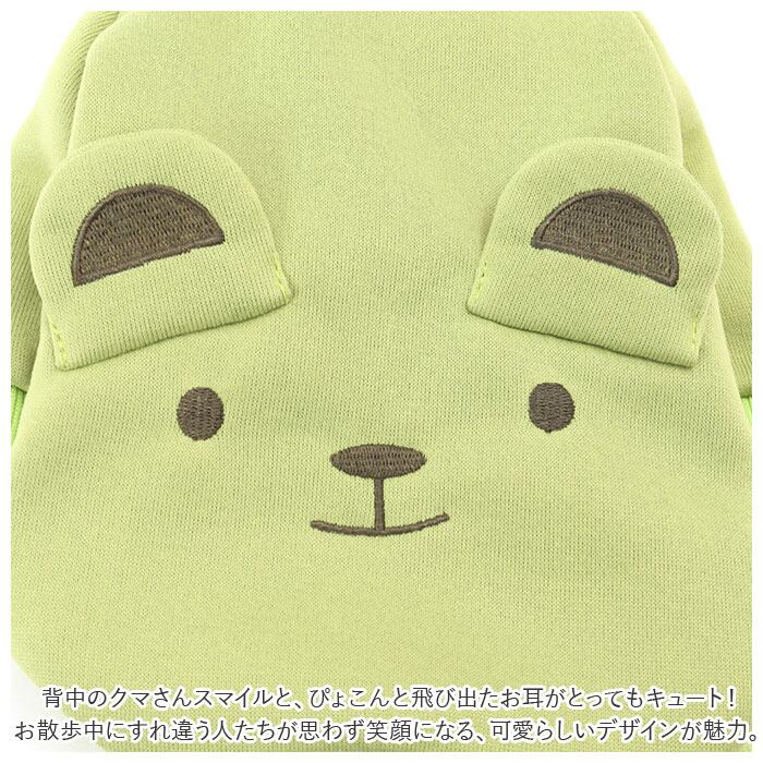 ・背中のクマさんスマイルと、ぴょこんと飛び出たお耳がとってもキュート!お散歩中にすれ違う人たちが思わず笑顔になる、可愛らしいデザインが魅力。
