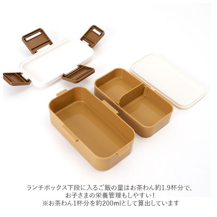 ・ランチボックス下段に入るご飯の量はお茶わん約1.9杯分で、お子さまの栄養管理もしやすい!(※お茶わん1杯分を約200mlとして算出しています)