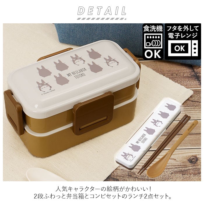 ・人気キャラクターの絵柄がかわいい!2段ふわっと弁当箱とコンビセットのランチ2点セット。