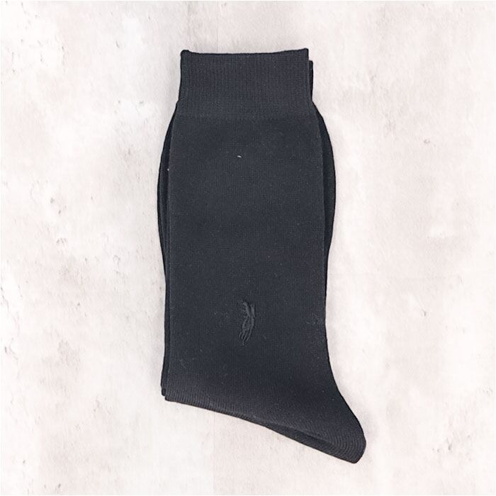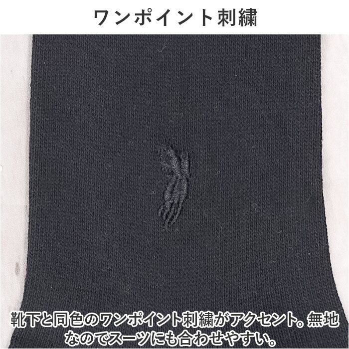 ・靴下と同色のワンポイント刺繍がアクセント。無地なのでスーツにも合わせやすい。