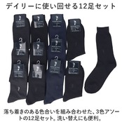 ・落ち着きのある色合いを組み合わせた、3色アソートの12足セット。洗い替えにも便利。