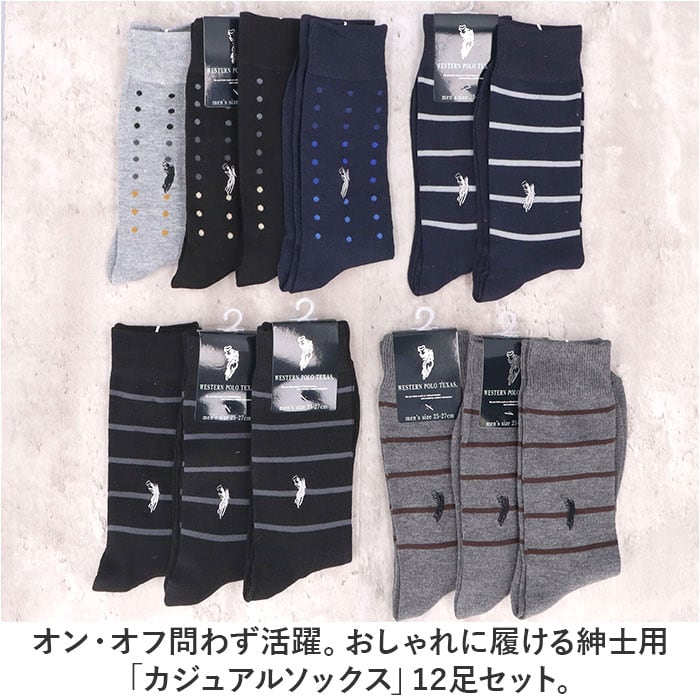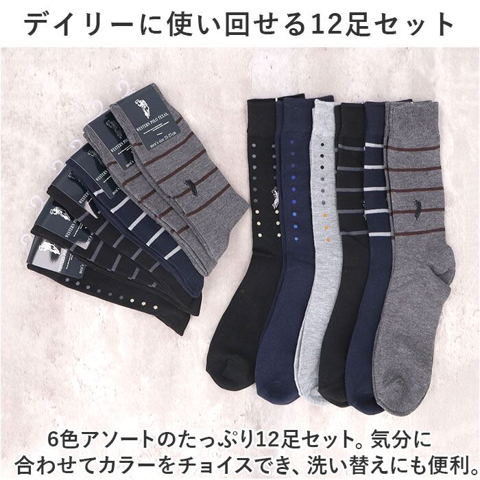 靴下 メンズ 12足組 通販 ソックス 靴した カジュアルソックス くつ下 紳士靴下 クルーソックス 柄 紳士用 メンズソックス セット おしゃれ 25〜27cm くつした オシャレ シンプル ブランド ポロ レッグウェア メンズアパレル