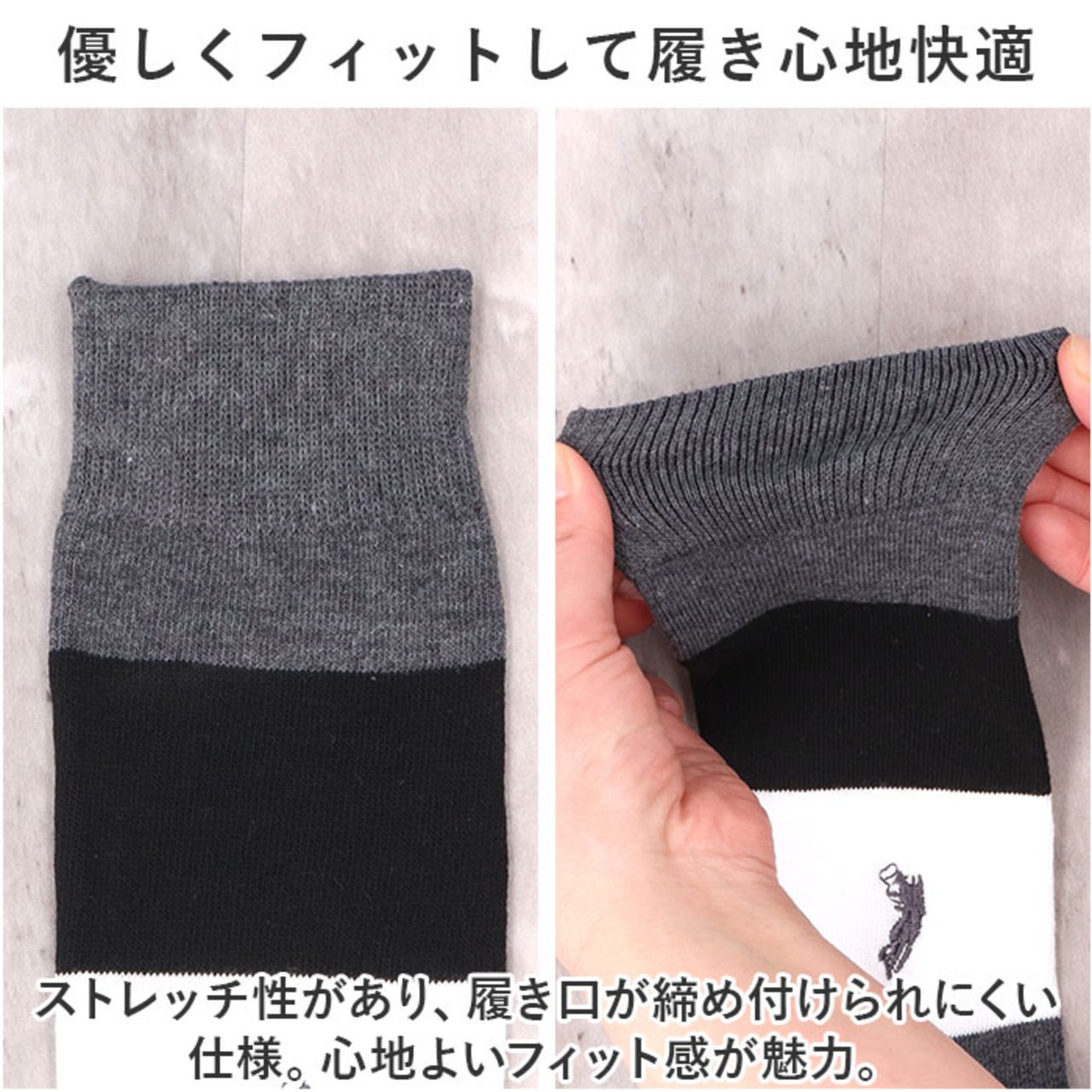 ・ストレッチ性があり、履き口が締め付けられにくい仕様。心地よいフィット感が魅力。