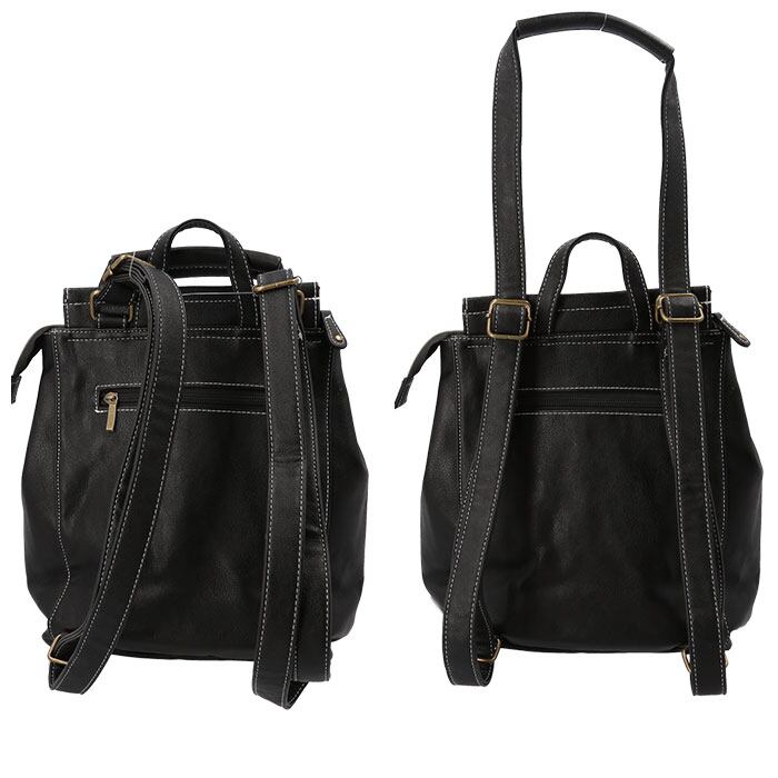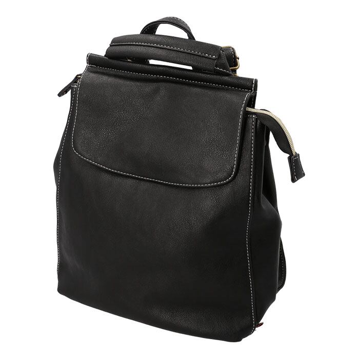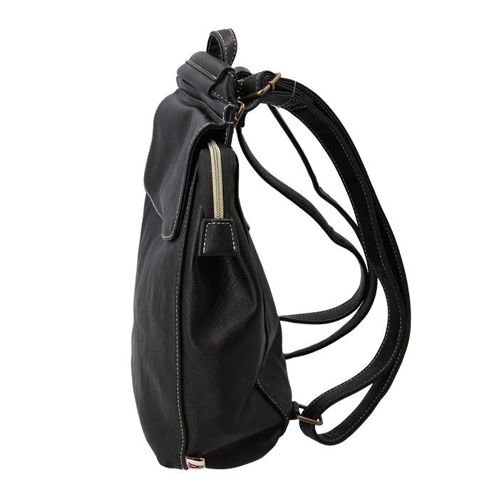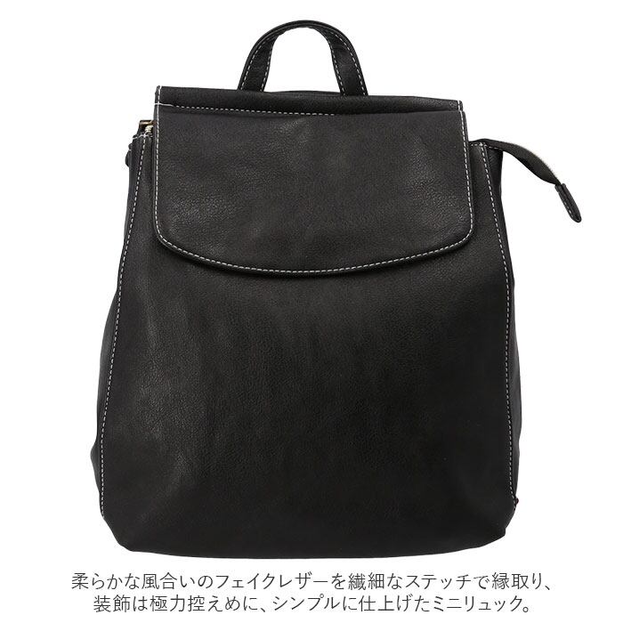 ・柔らかな風合いのフェイクレザーを繊細なステッチで縁取り、装飾は極力控えめに、シンプルに仕上げたミニリュック。