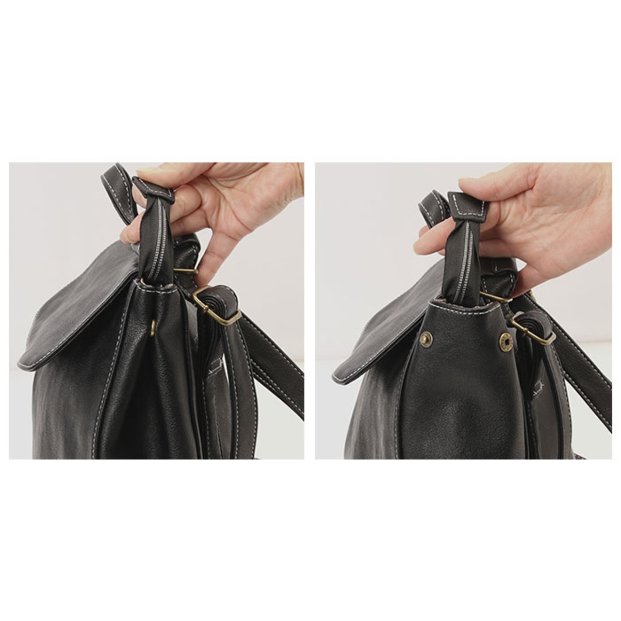 ・リュックのショルダーストラップ、上部のハンドルを引き上げると一瞬でショルダーバッグに変身する2WAY仕様。