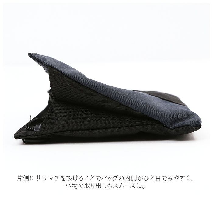 ・片側にササマチを設けることでバッグの内側がひと目でみやすく、小物の取り出しもスムーズに。
