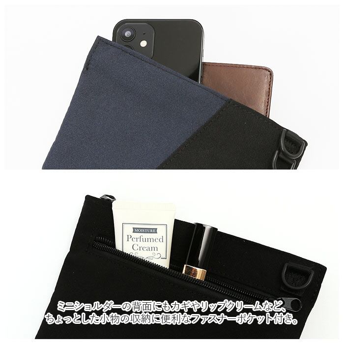 ・ミニショルダーの背面にもカギやリップクリームなど、ちょっとした小物の収納に便利なファスナーポケット付き。