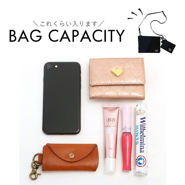 ・軽量なサコッシュタイプのミニショルダーに、カードサイズのミニポーチが付いた同一デザインの2点セット。