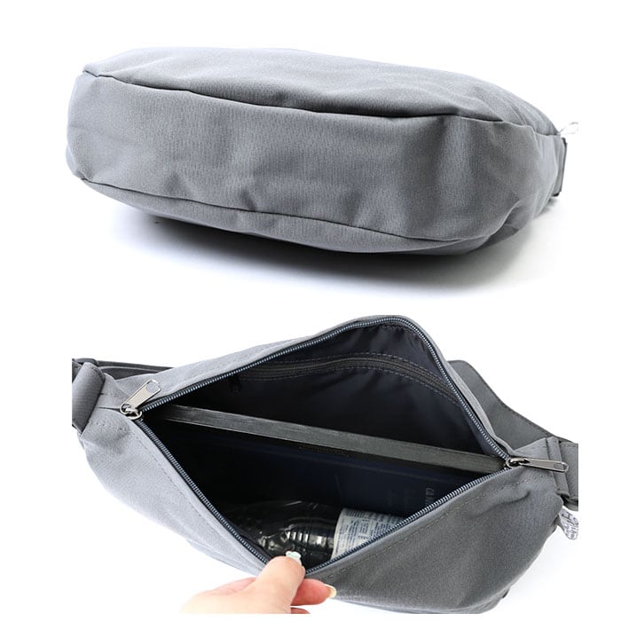 ・開口部は左右どちらからも開く、ダブルファスナー式。中身がこぼれ落ちることなく、プライバシーも確保。