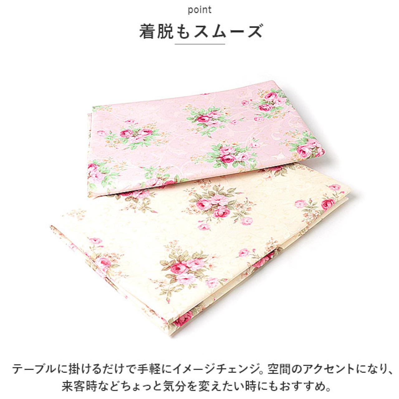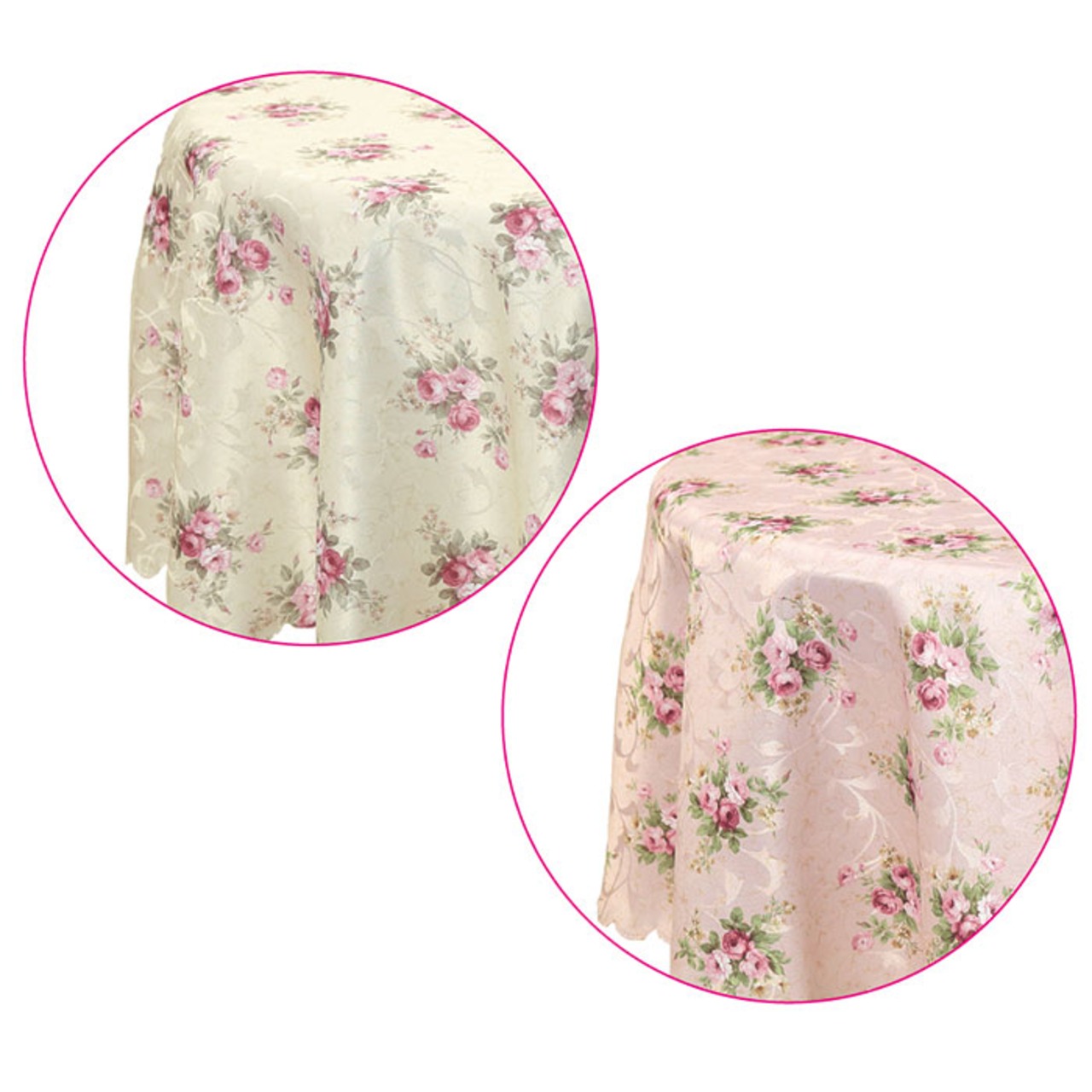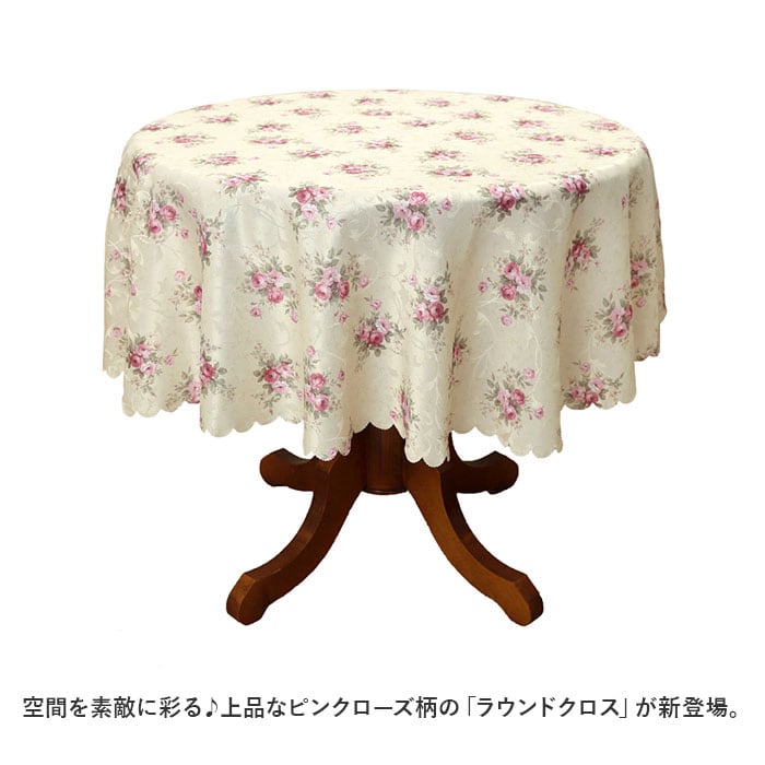 ・空間を素敵に彩る♪上品なピンクローズ柄の「ラウンドクロス」が新登場。