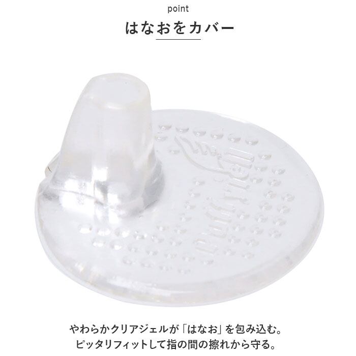・やわらかクリアジェルが「はなお」を包み込み、擦れて痛い「はなお」をカバー。ピッタリフィットして指の間の擦れから守る。