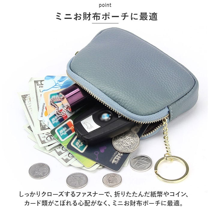 ・しっかりクローズするファスナーで、折りたたんだ紙幣やコイン、カード類がこぼれる心配がなく、ミニお財布ポーチに最適。