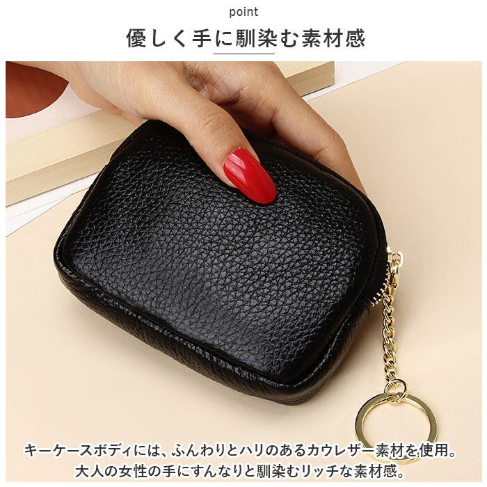 ・キーケースボディには、ふんわりとハリのあるカウレザー素材を使用。大人の女性の手にすんなりと馴染むリッチな素材感。